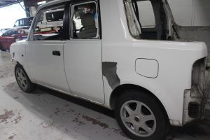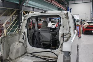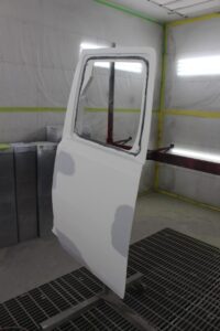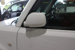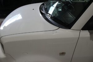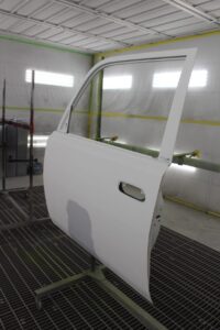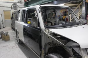 右のフロントドアは、以前の鈑金跡が酷く、再鈑金するよりも中古ドアを使ったほうが、コスト・仕上がり共にいいので中古ドアに交換。
