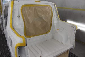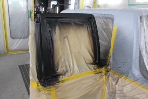 そして、ボディー仕上げ後、ドアサッシ部分のマットブラックの塗装。