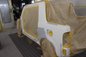 下地処理を終えると、まずはボディー塗装。