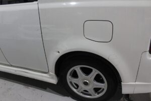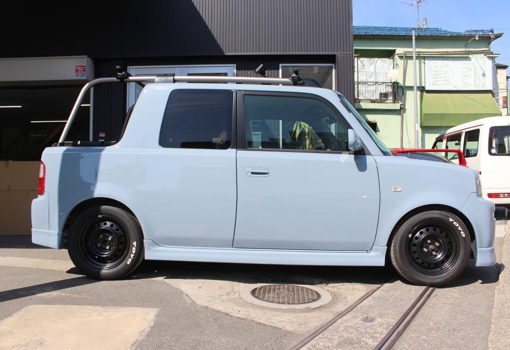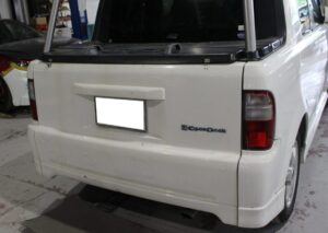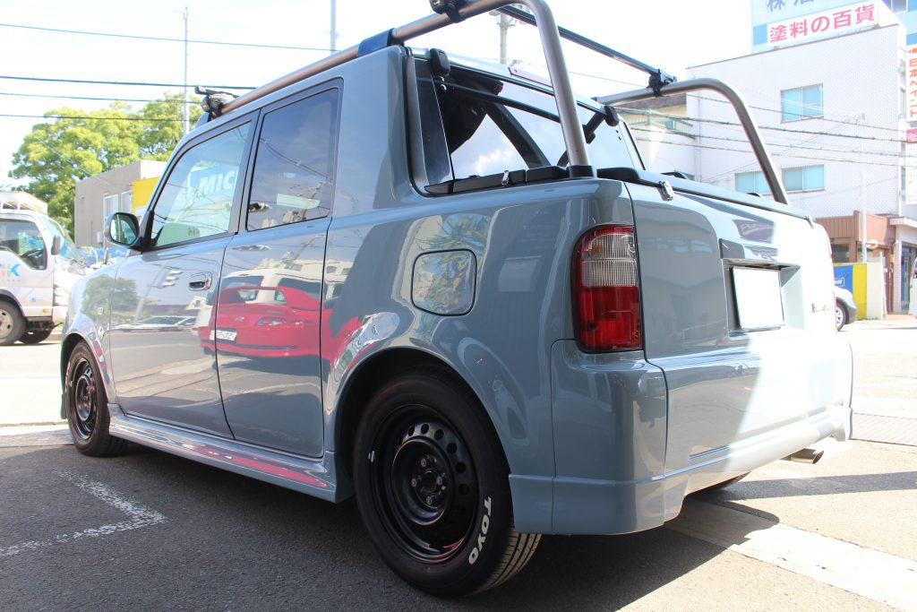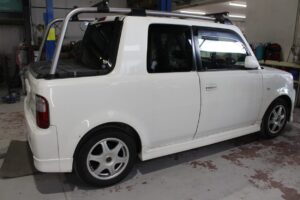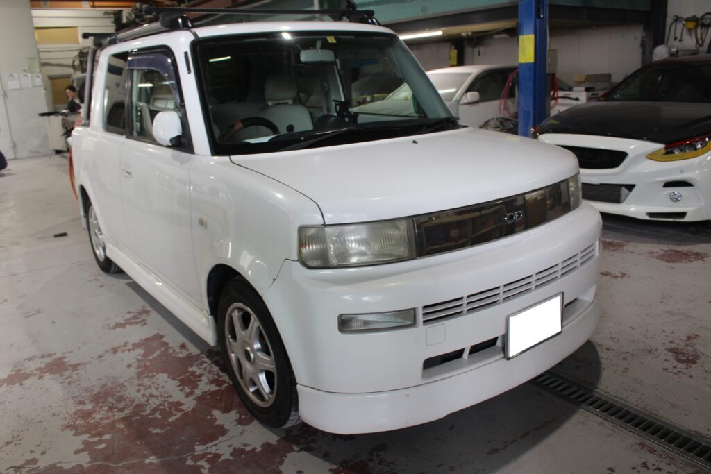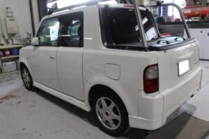 トヨタbB オープンデッキ NCP34の、事故修理・鈑金塗装・オールペイント・カスタム・レストア・ガラスコーティング・4輪アライメントは実績のある、ボディーショップマツサカにお任せください。